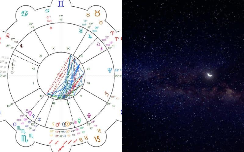 Pour info : Vénus est en exil en Scorpion et opposée à Jupiter avec une opposition (180°) reliée par un Sextile (60°) et un Trigone (120°) peut s’avérer une grande richesse. D’autant que Mercure est à 120° de Jupiter et à 60° de Vénus. S’il n’est pas évident de capter l’énergie si positive de ce beau triangle, c’est parce que Vénus est en exil que Jupiter est rétrograde et que Mercure est en passe de l’être.