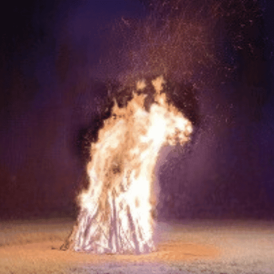 Cette photo reçue d’un feu de la Saint-Michel très « Voie de l’Amoureux » avec ces deux étoiles qui s’approchent dans la lumière au sommet 😉🤩🤩🤩